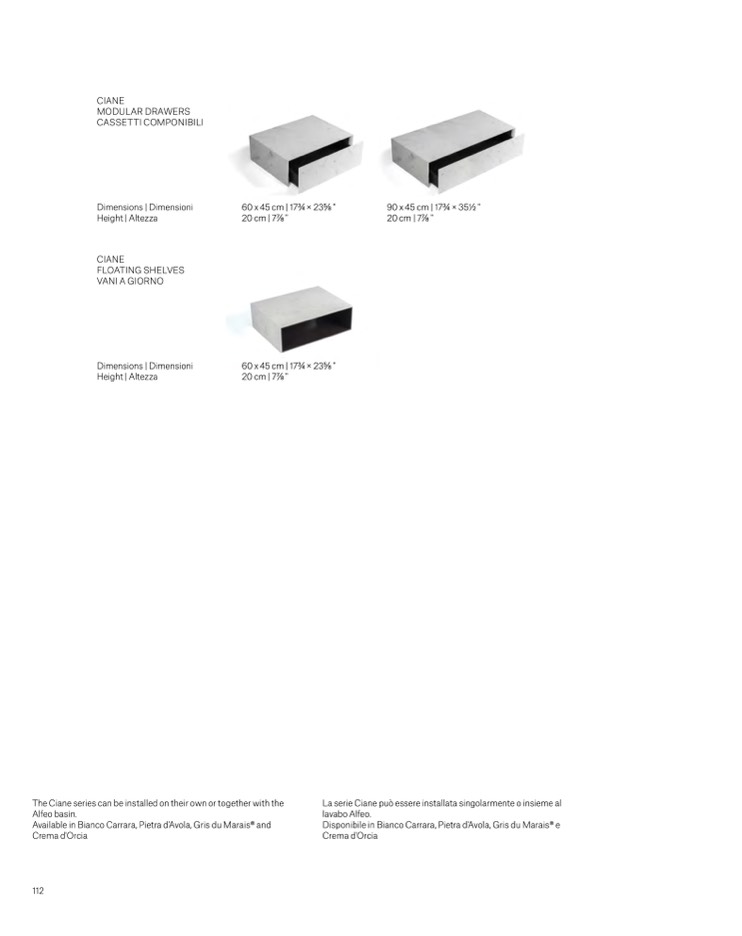 Disponibile in Bianco Carrara, Pietra d'Avola, Gris du Marais® e