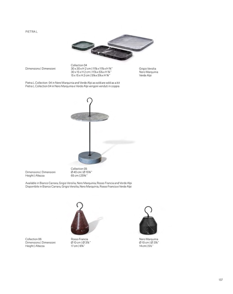 Available in Bianco Carrara, Grigio Versilia, Nero Marquinia, Rosso Francia and Verde Alpi