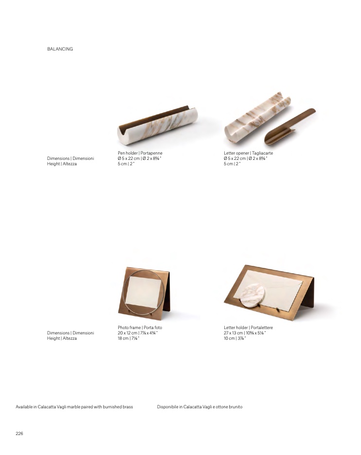 Disponibile in Calacatta Vagli e ottone brunito