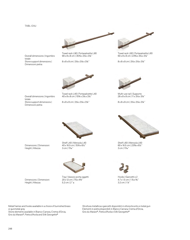 Stone elements available in Bianco Carrara, Crema d’Orcia,