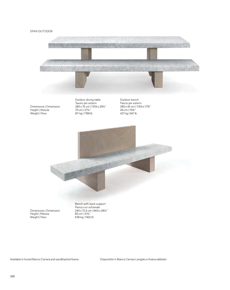 Disponibile in Bianco Carrara Levigato e Avana sabbiato