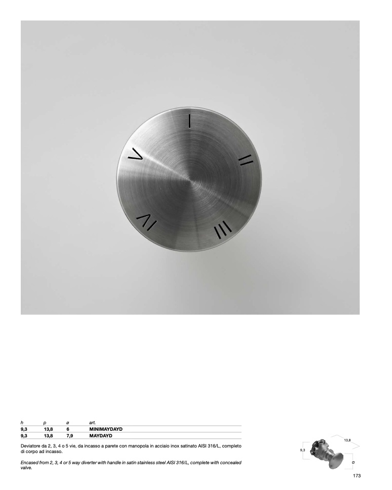 Encased from 2, 3, 4 or 5 way diverter with handle in satin stainless steel AISI 316/L, complete with concealed