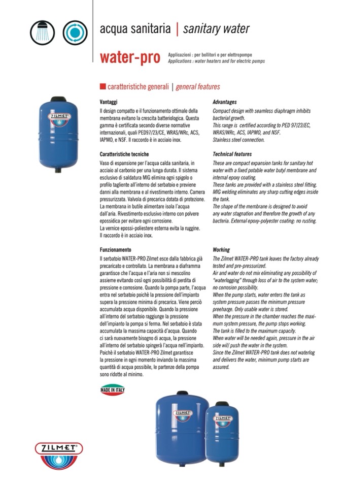 Poichè il serbatoio WATER-PRO Zilmet garantisce