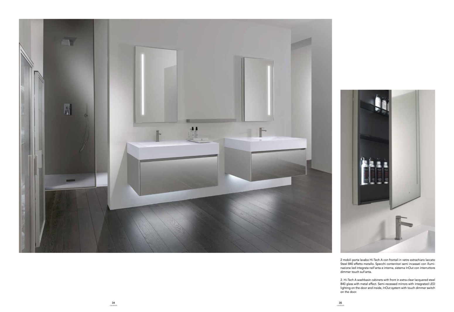 840 glass with metal effect. Semi-recessed mirrors with integrated LED
