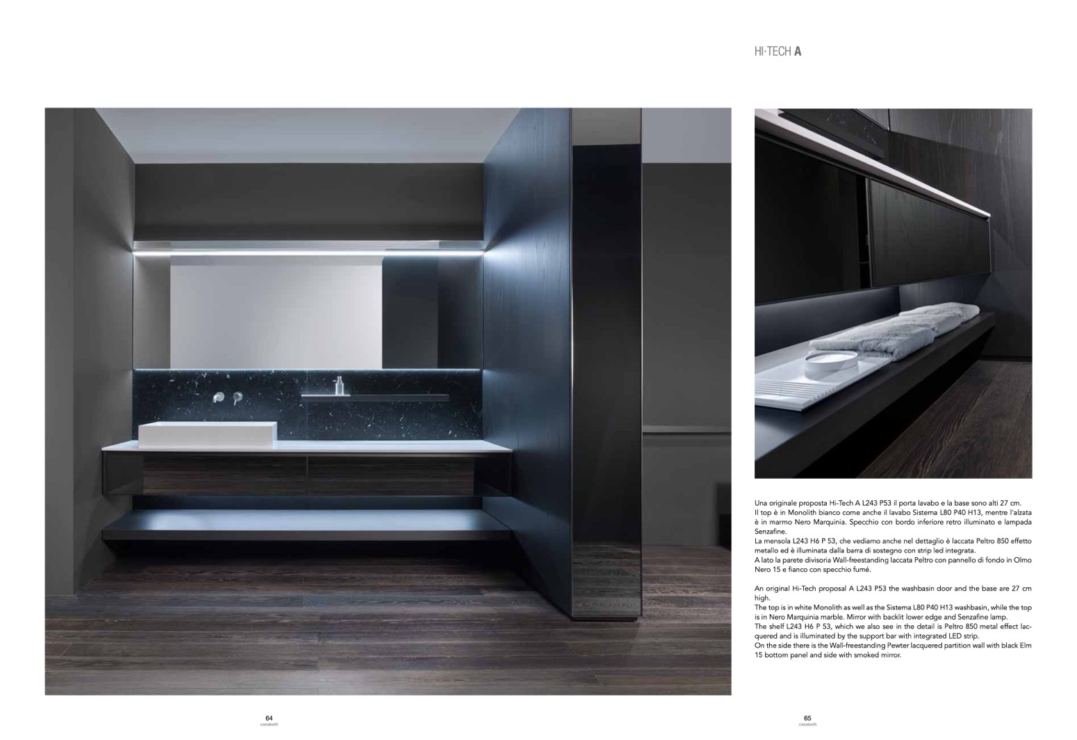 is in Nero Marquinia marble. Mirror with backlit lower edge and Senzafine lamp.