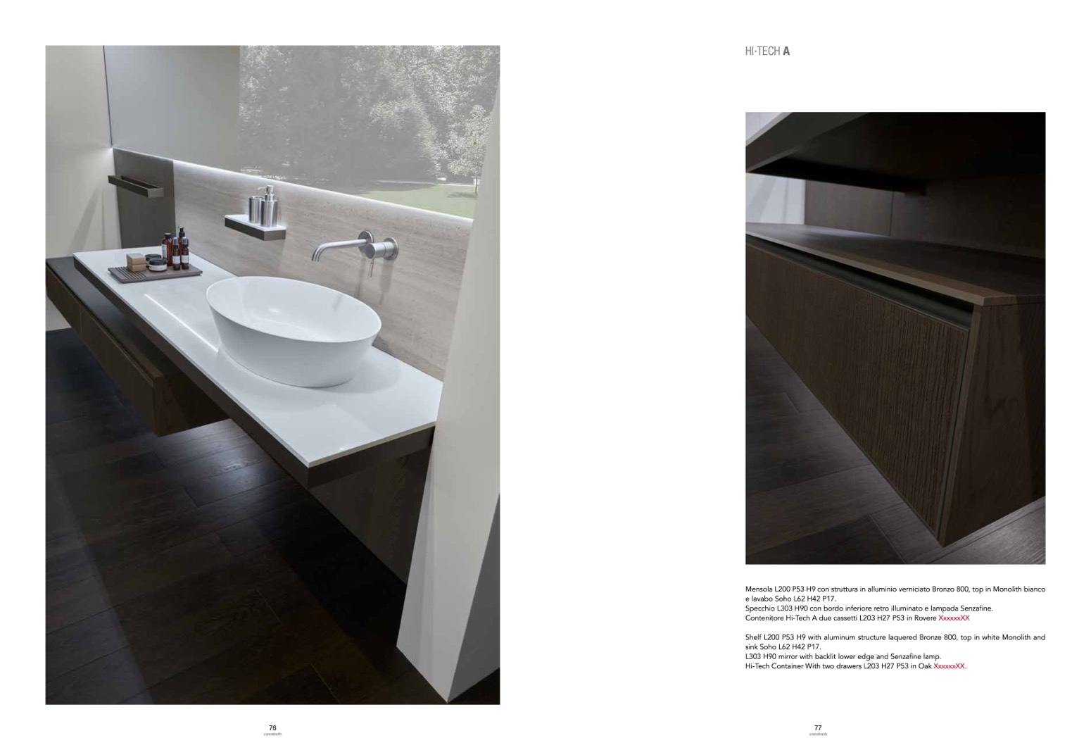 L303 H90 mirror with backlit lower edge and Senzafine lamp.
