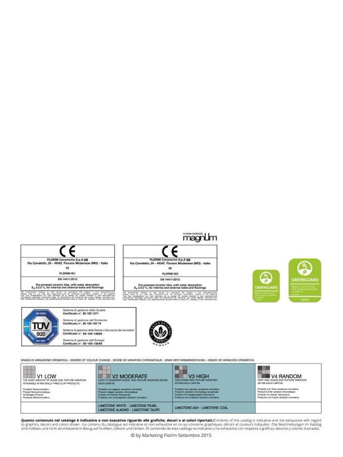Informationen bezueglich technischer Daten zur Beschriftung CE entnehmen Sie unserer Website www.florim.com