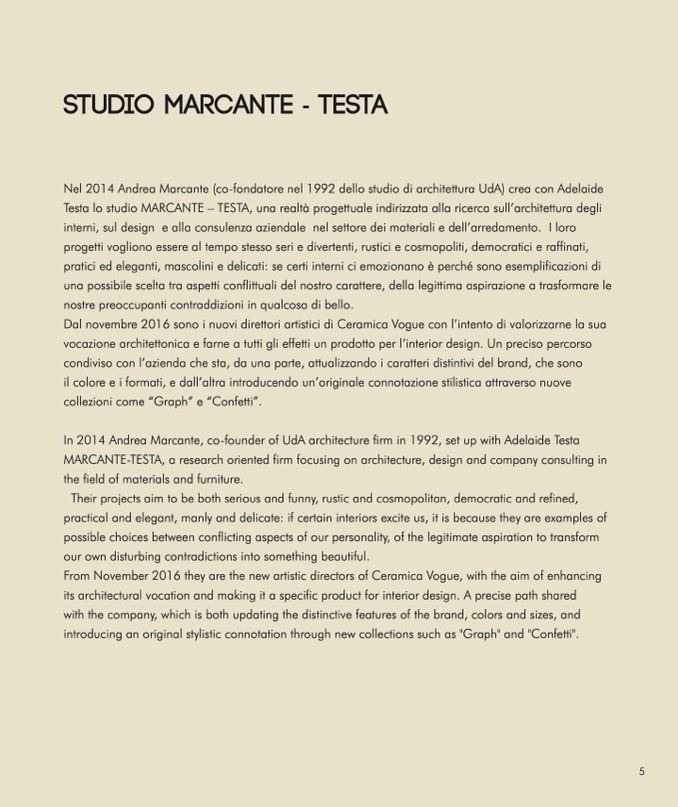 From November 2016 they are the new artistic directors of Ceramica Vogue, with the aim of enhancing