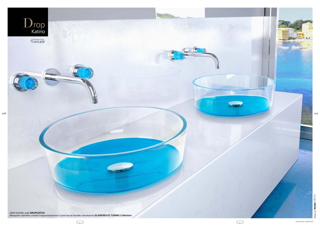 Manopole rubinetto cristallo trasparente/marine Crystal faucet handles clear/marine GLAMOROUS TUNING Collection