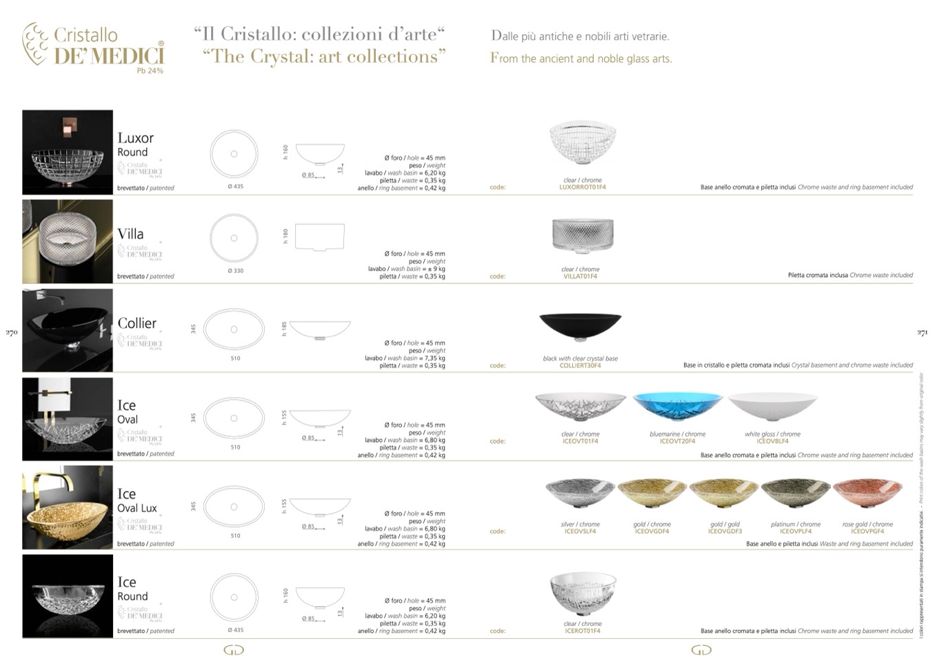 Base in cristallo e piletta cromata inclusi Crystal basement and chrome waste included