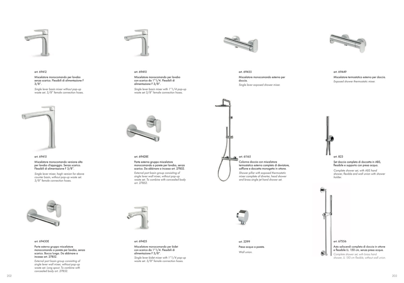 soffione e doccetta monogetto in ottone.