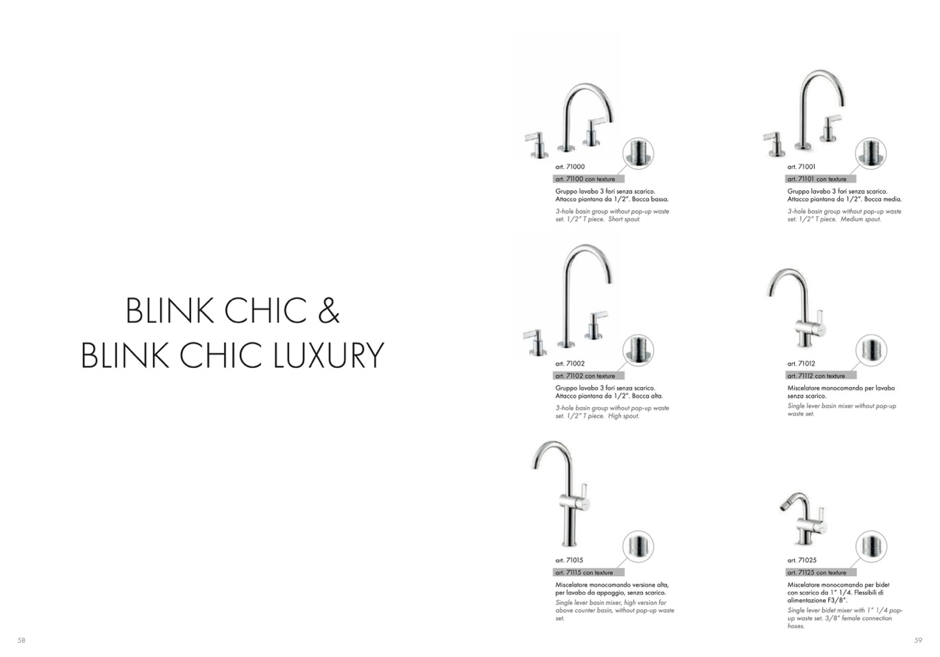 Gruppo lavabo 3 fori senza scarico.