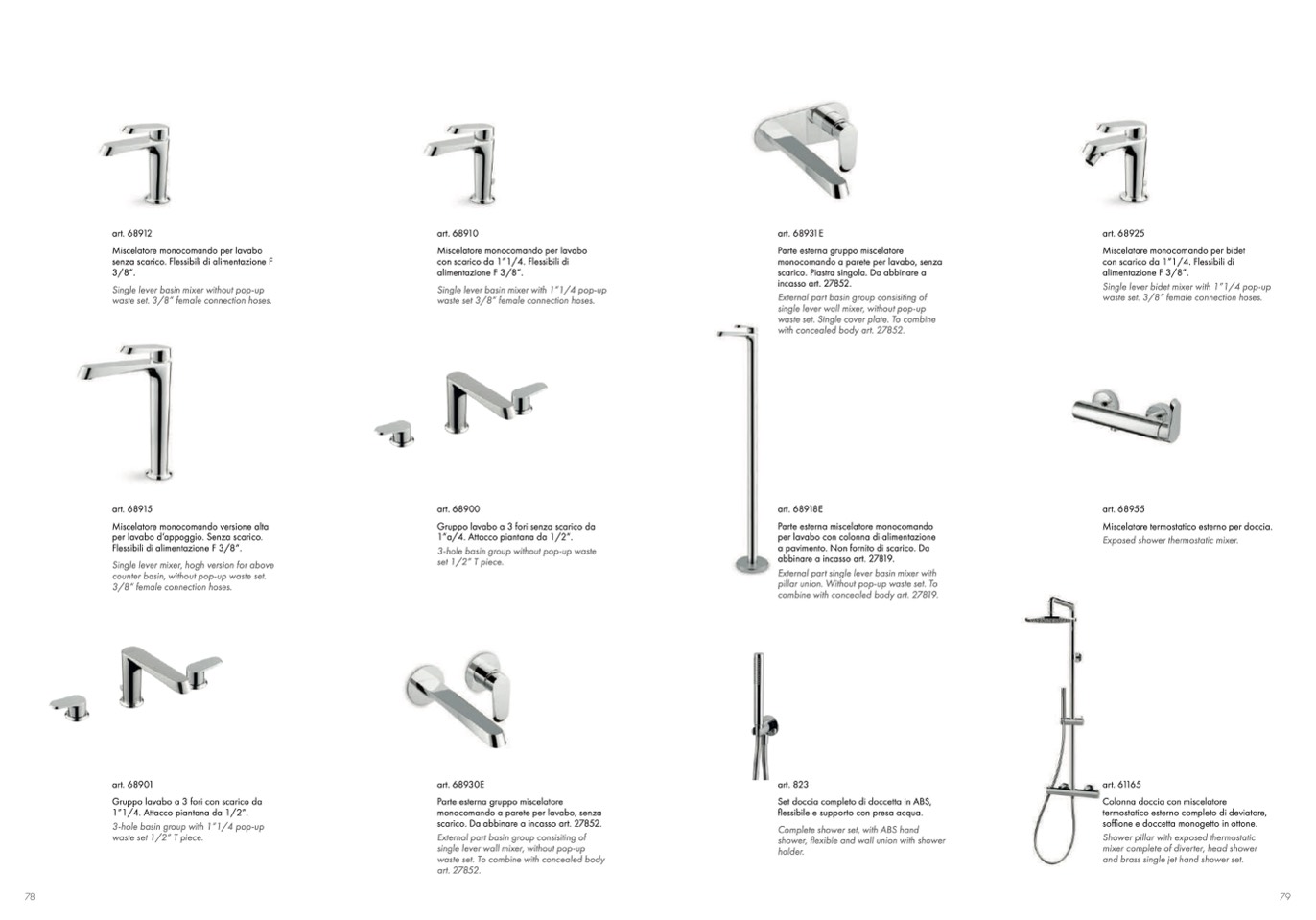 soffione e doccetta monogetto in ottone.