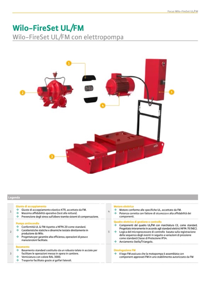 à Conformità UL & FM rispetto a NFPA 20 come standard.