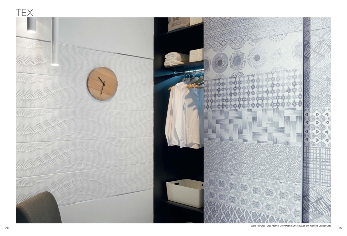 Wall: Tex Grey_Grey Atomic_Grey Pattern 29,75x99,55 cm_Geneva Copper Lista