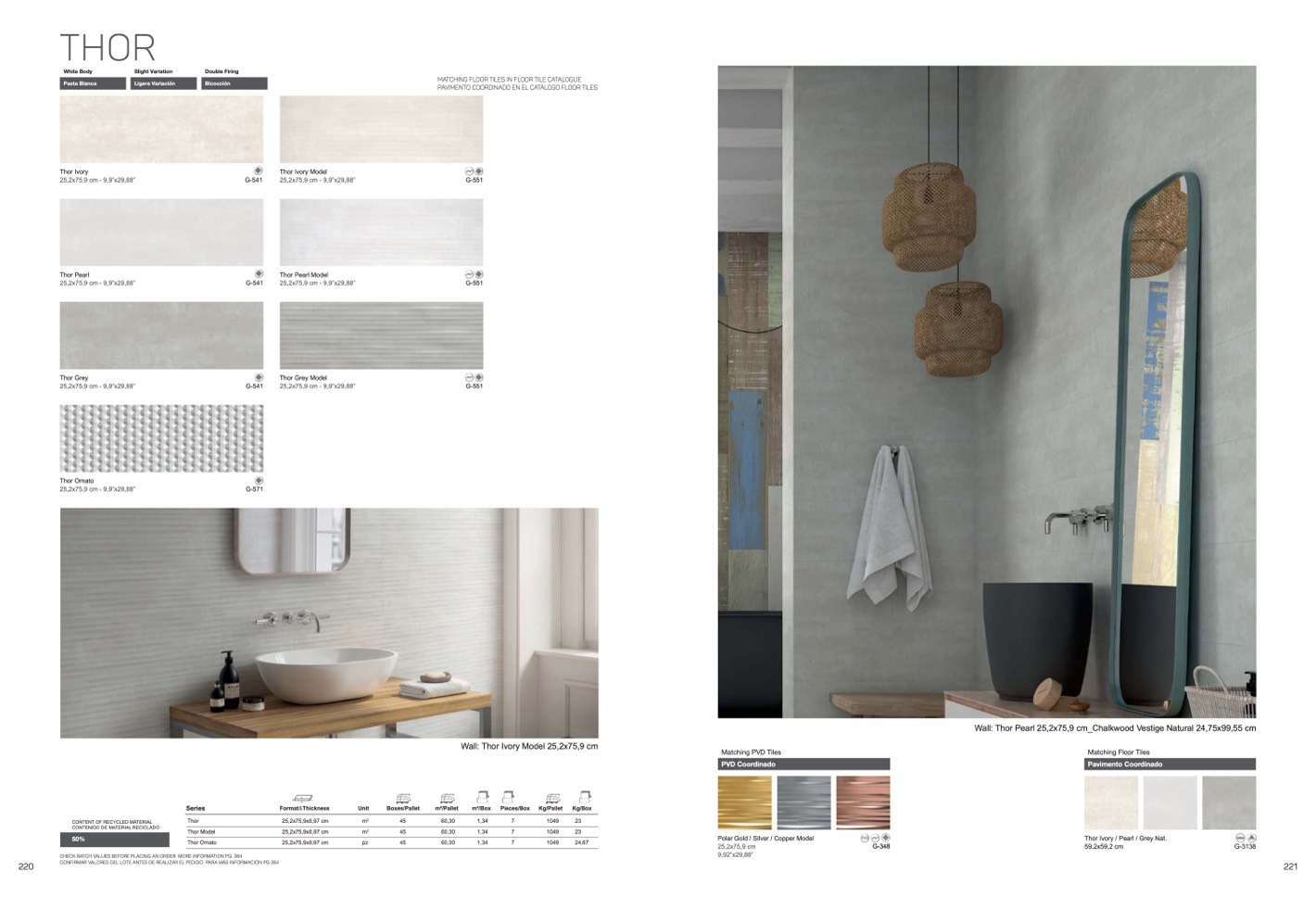Wall: Thor Pearl 25,2x75,9 cm_Chalkwood Vestige Natural 24,75x99,55 cm