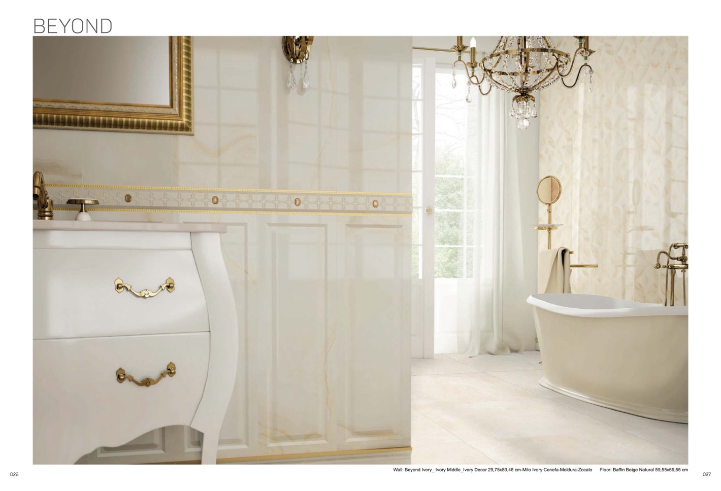 Wall: Beyond Ivory_ Ivory Middle_Ivory Decor 29,75x89,46 cm-Milo Ivory Cenefa-Moldura-Zocalo Floor: Baffin Beige Natural 59,55x59,55 cm