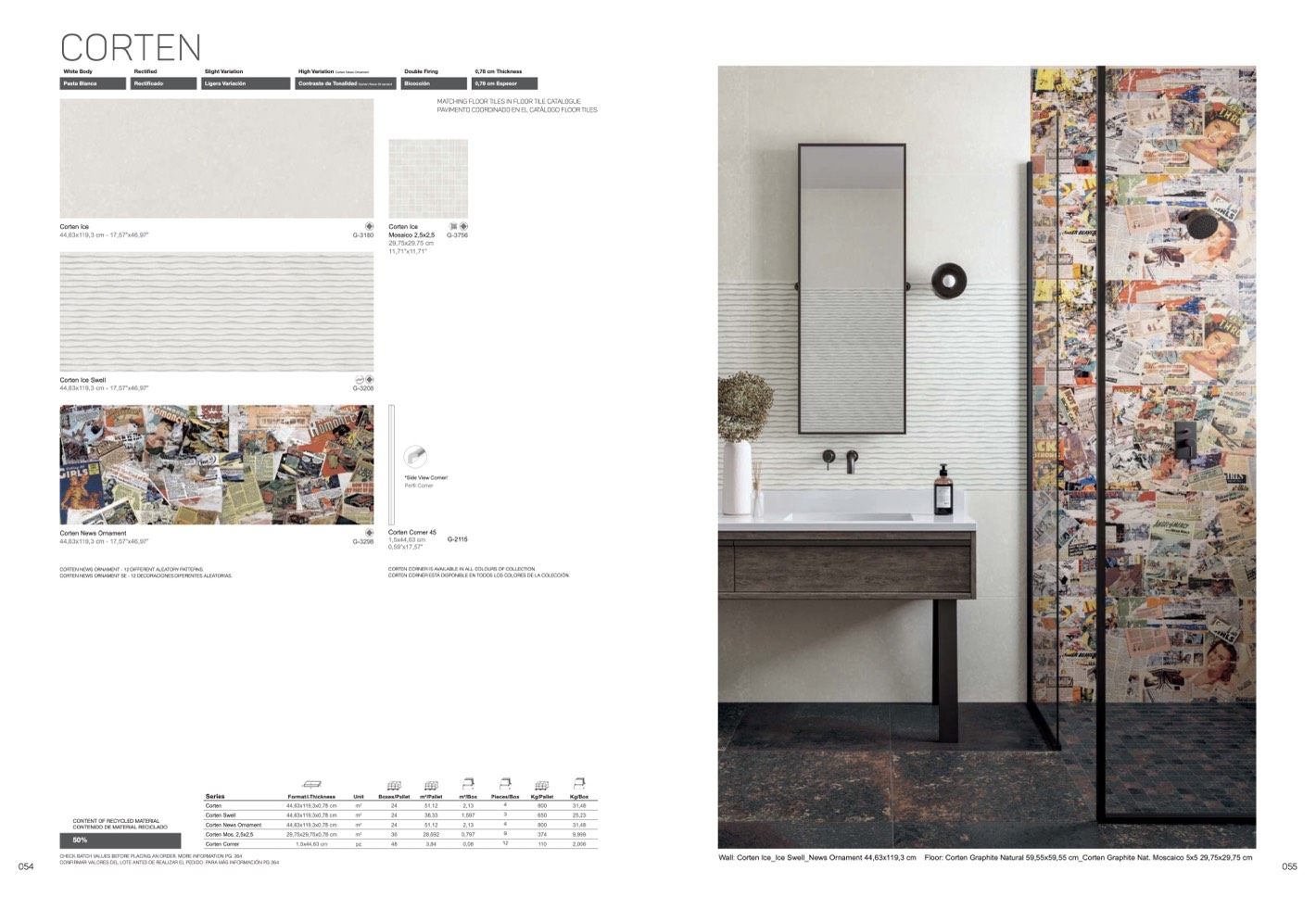 Floor: Corten Graphite Natural 59,55x59,55 cm_Corten Graphite Nat. Moscaico 5x5 29,75x29,75 cm