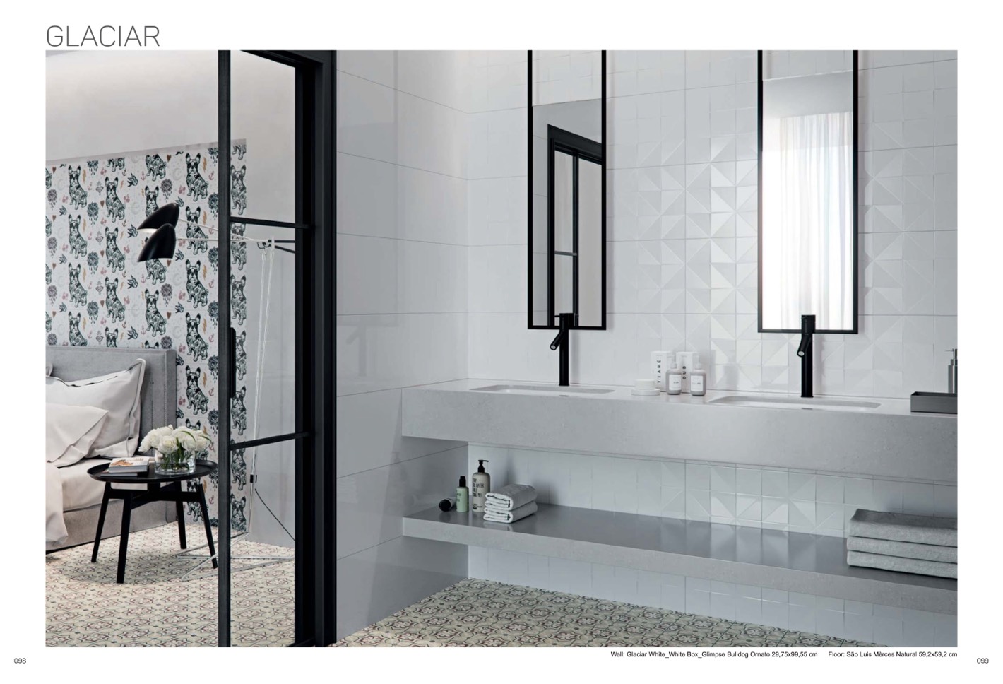 Wall: Glaciar White_White Box_Glimpse Bulldog Ornato 29,75x99,55 cm