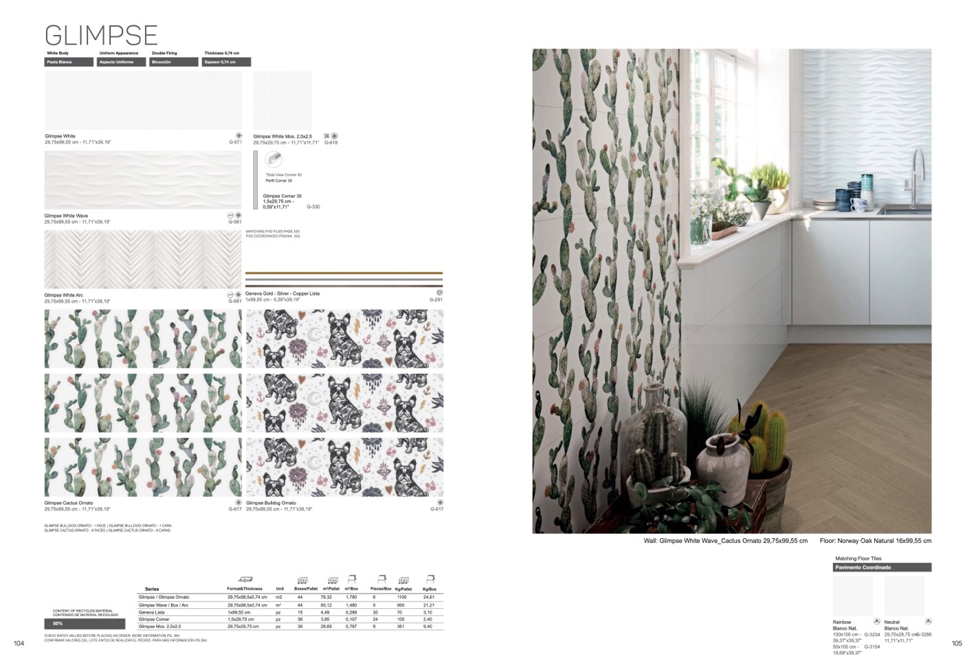 Wall: Glimpse White Wave_Cactus Ornato 29,75x99,55 cm
