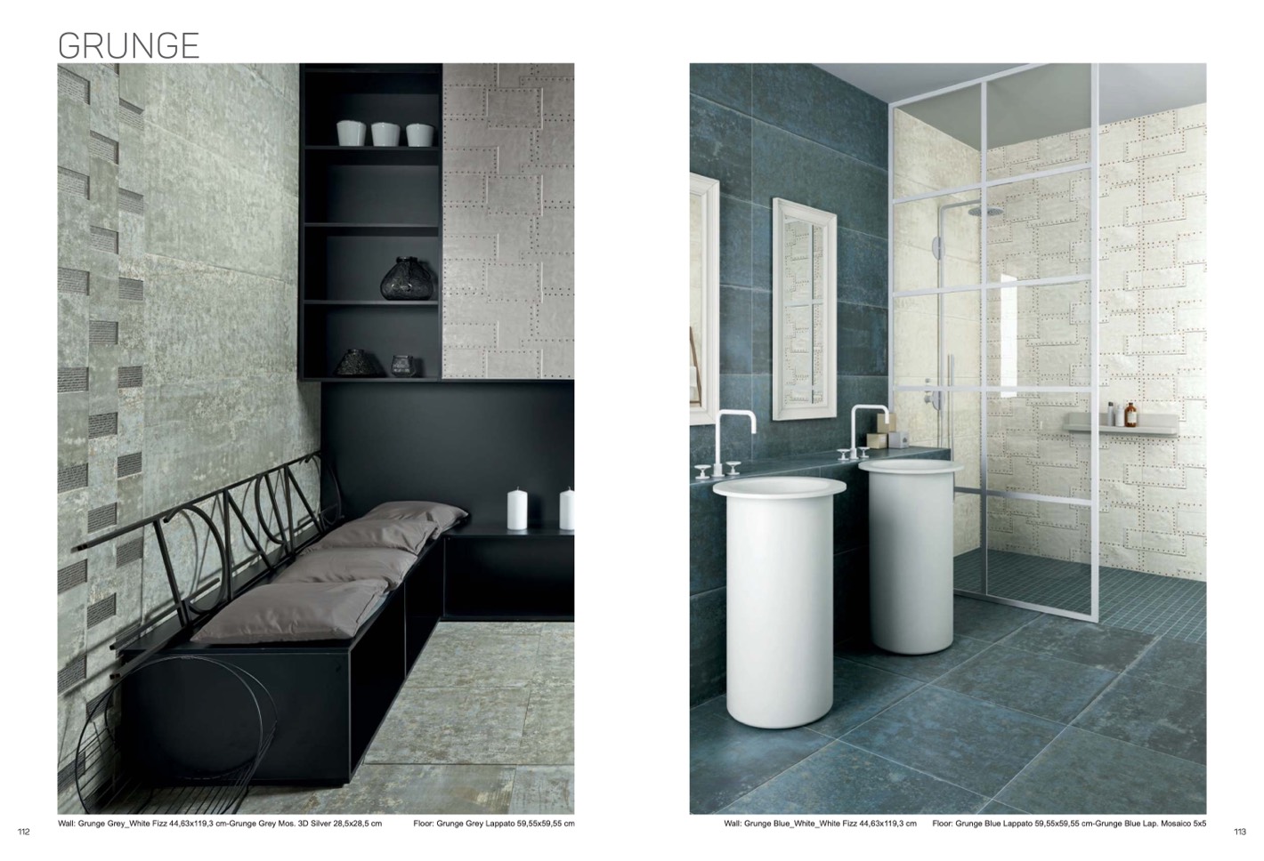Wall: Grunge Grey_White Fizz 44,63x119,3 cm-Grunge Grey Mos. 3D Silver 28,5x28,5 cm