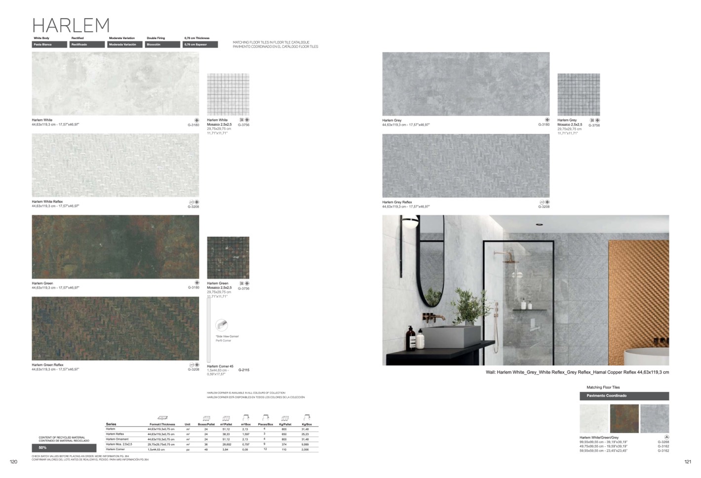 Wall: Harlem White_Grey_White Reflex_Grey Reflex_Hamal Copper Reflex 44,63x119,3 cm