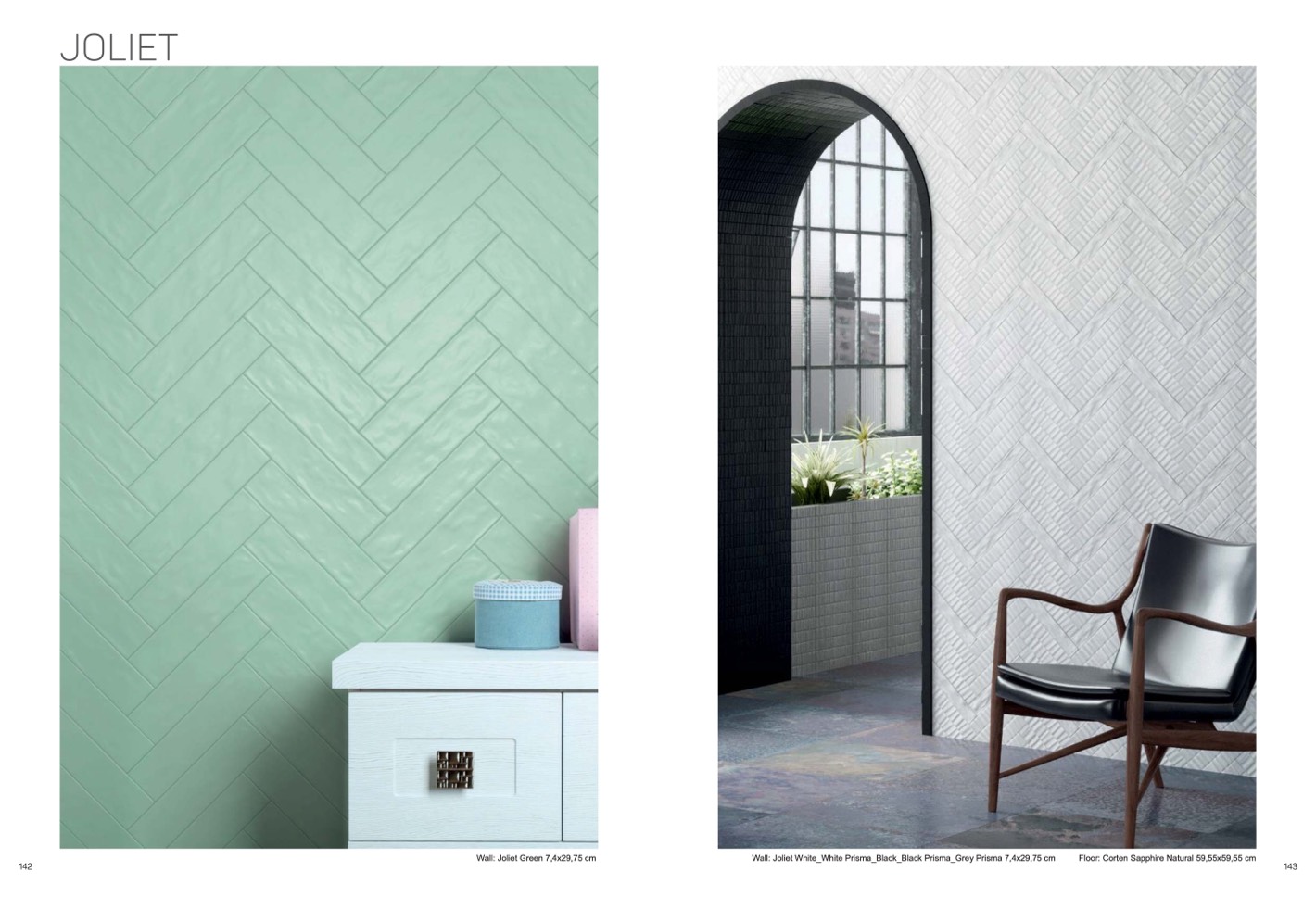 Wall: Joliet White_White Prisma_Black_Black Prisma_Grey Prisma 7,4x29,75 cm