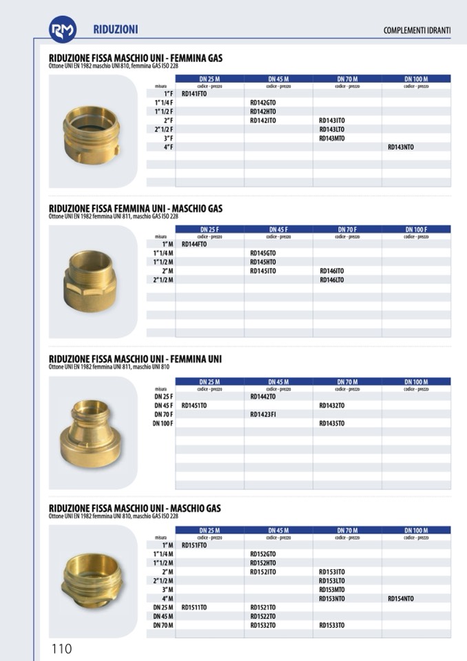 Ottone UNI EN 1982 maschio UNI 810, femmina GAS ISO 228