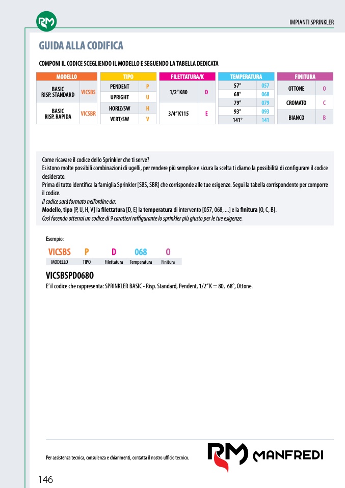 E’ il codice che rappresenta: SPRINKLER BASIC - Risp. Standard, Pendent, 1/2” K = 80, 68°, Ottone.