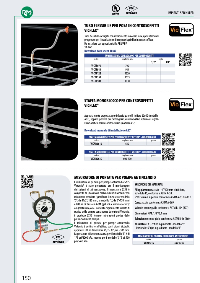approvati FM, in dimensioni 21/2 - 12”/65 - 300 mm.