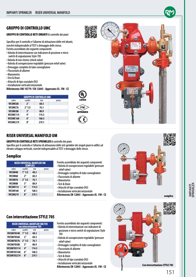 Riferimento UNI 10779 / EN 12845 - Approvato UL -FM - CE