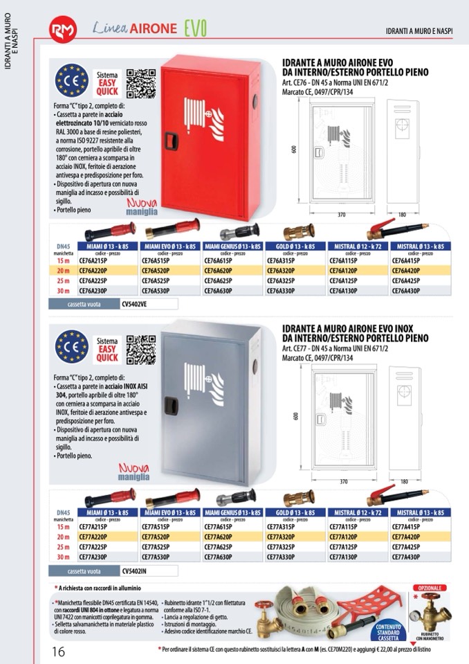 * Per ordinare il sistema CE con questo rubinetto sostituisci la lettera A con M (es. CE70M220) e aggiungi € 22,00 al prezzo di listino