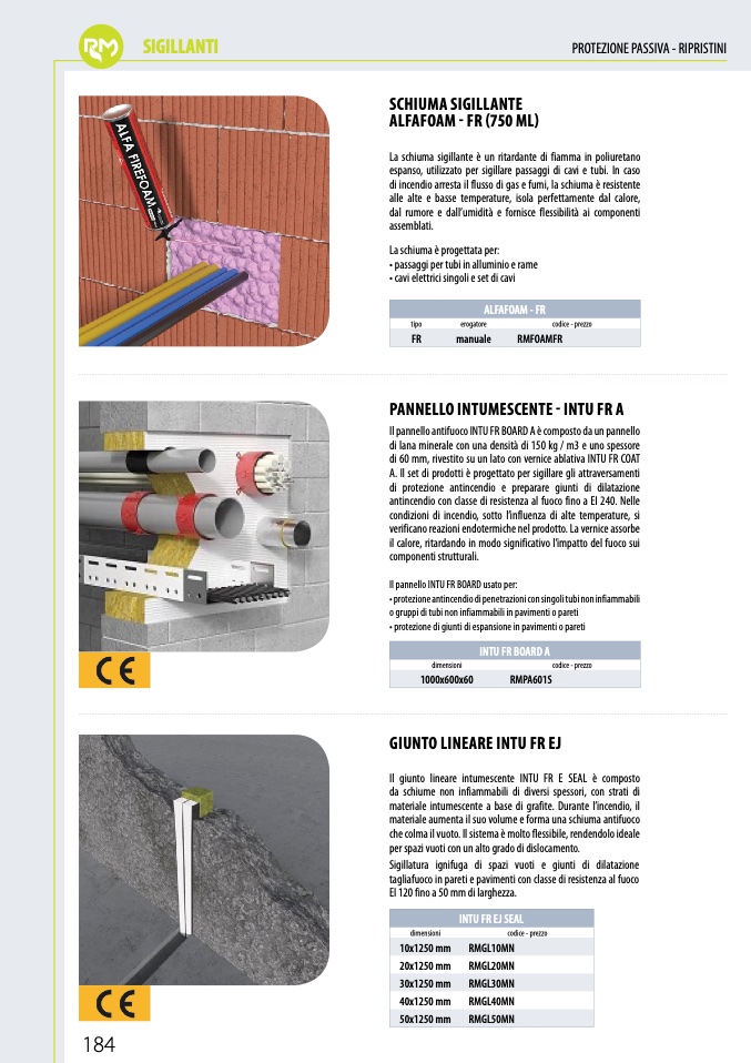 • protezione antincendio di penetrazioni con singoli tubi non infiammabili