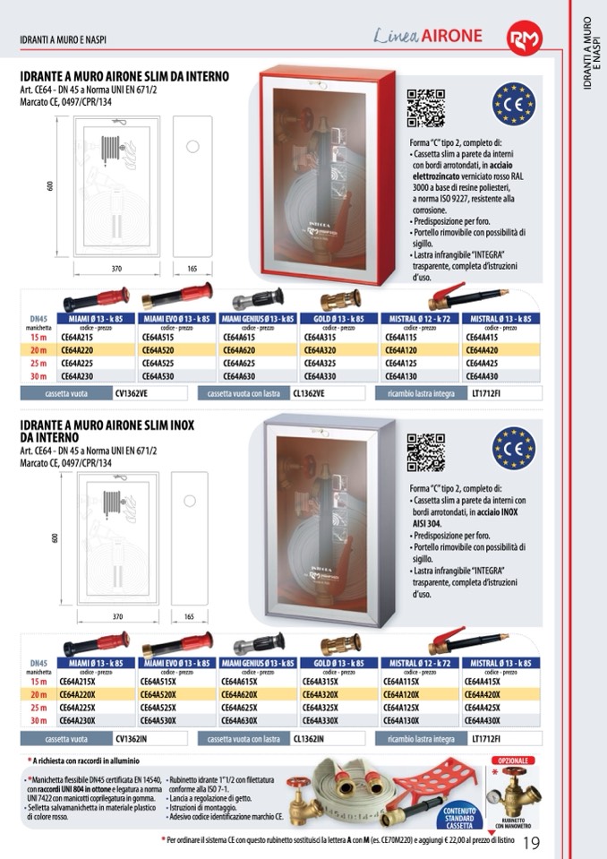 * Per ordinare il sistema CE con questo rubinetto sostituisci la lettera A con M (es. CE70M220) e aggiungi € 22,00 al prezzo di listino