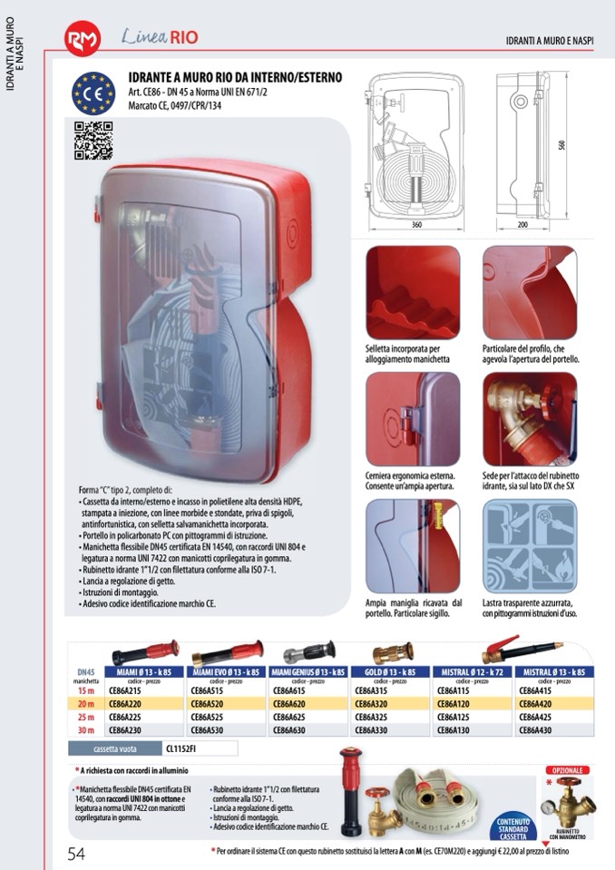 • Rubinetto idrante 1”1/2 con filettatura conforme alla ISO 7-1.
