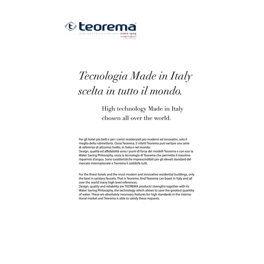 the best in sanitary faucets. That is Teorema. And Teorema can boast in Italy and all