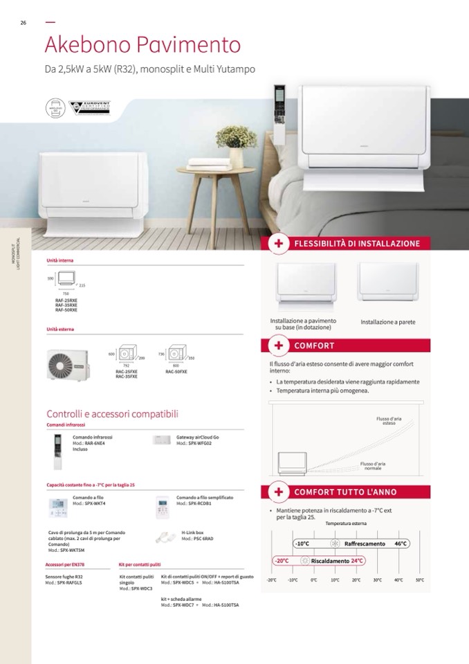 • Mantiene potenza in riscaldamento a -7°C ext