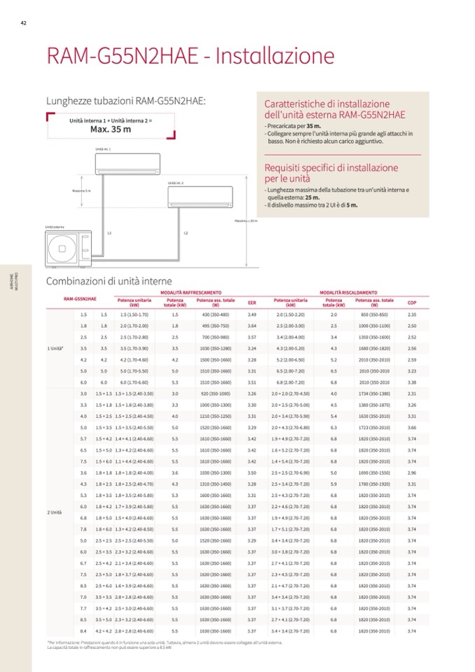 *Per informazione: Prestazioni quando è in funzione una sola unità. Tuttavia, almeno 2 unità devono essere collegate all'unità esterna.