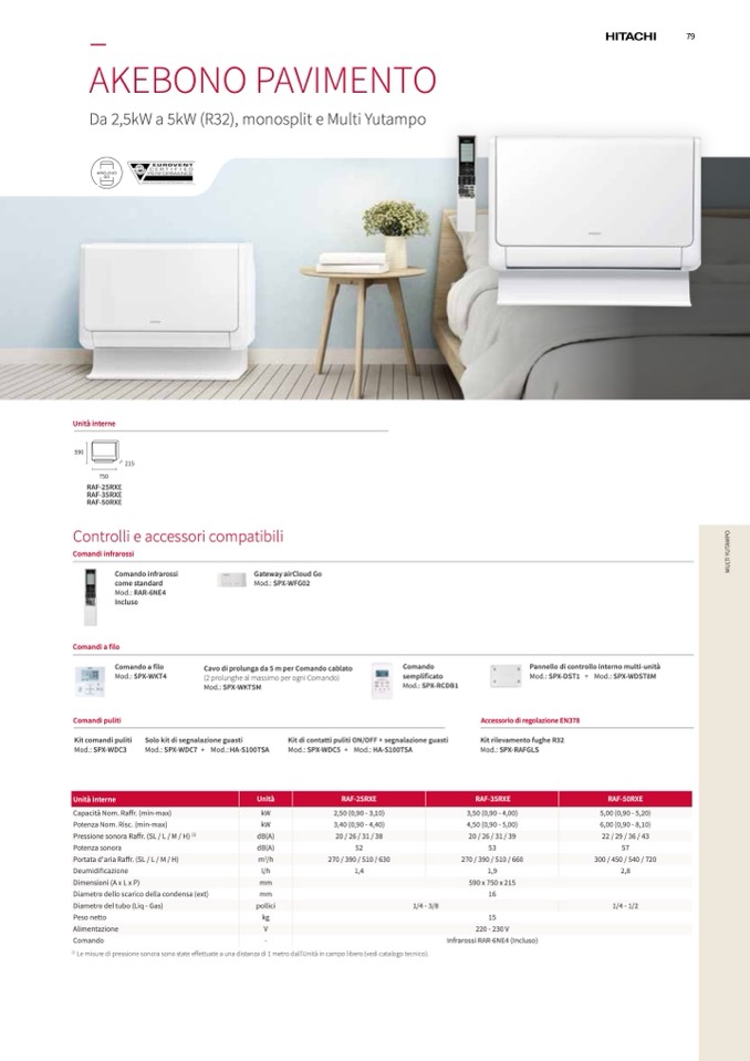 Le misure di pressione sonora sono state effettuate a una distanza di 1 metro dall'Unità in campo libero (vedi catalogo tecnico).