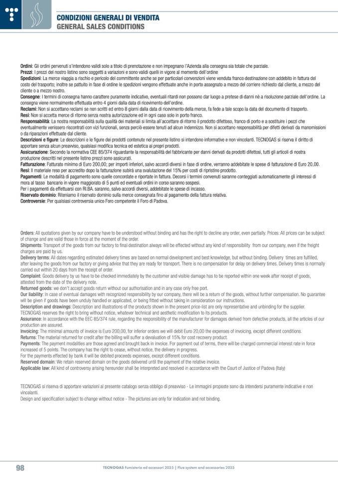 TECNOGAS si riserva di apportare variazioni al presente catalogo senza obbligo di preavviso - Le immagini proposte sono da intendersi puramente indicative e non