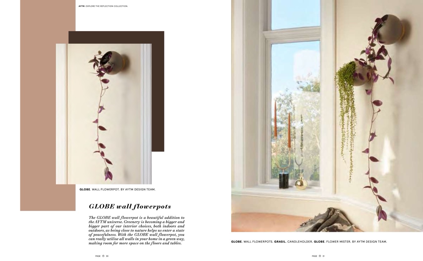 GLOBE. WALL FLOWERPOTS. GRASIL. CANDLEHOLDER. GLOBE. FLOWER MISTER. BY AYTM DESIGN TEAM.
