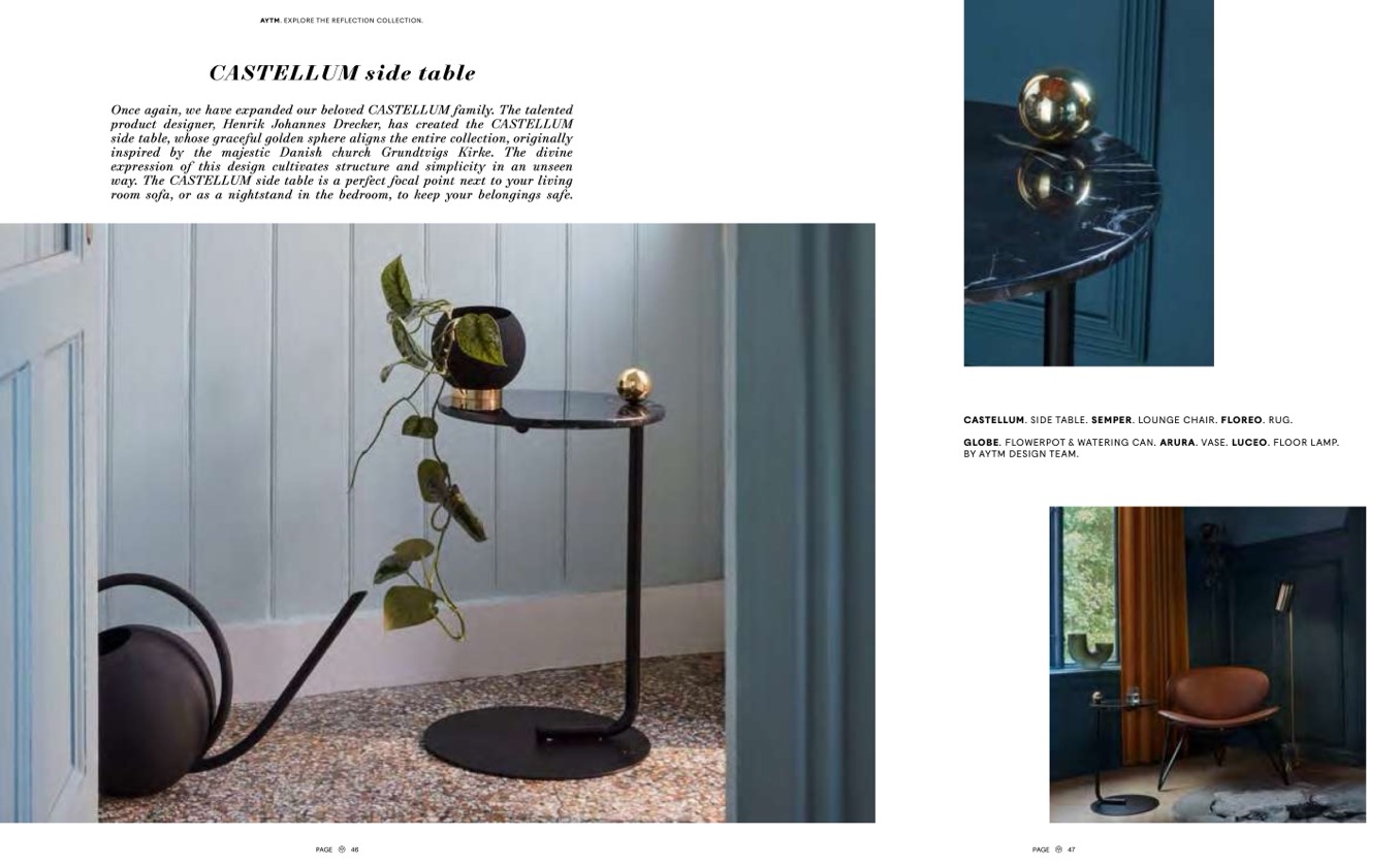CASTELLUM. SIDE TABLE. SEMPER. LOUNGE CHAIR. FLOREO. RUG.