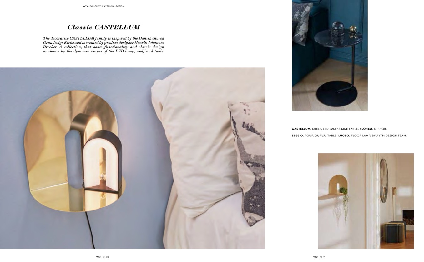 CASTELLUM. SHELF, LED LAMP & SIDE TABLE. FLOREO. MIRROR.
