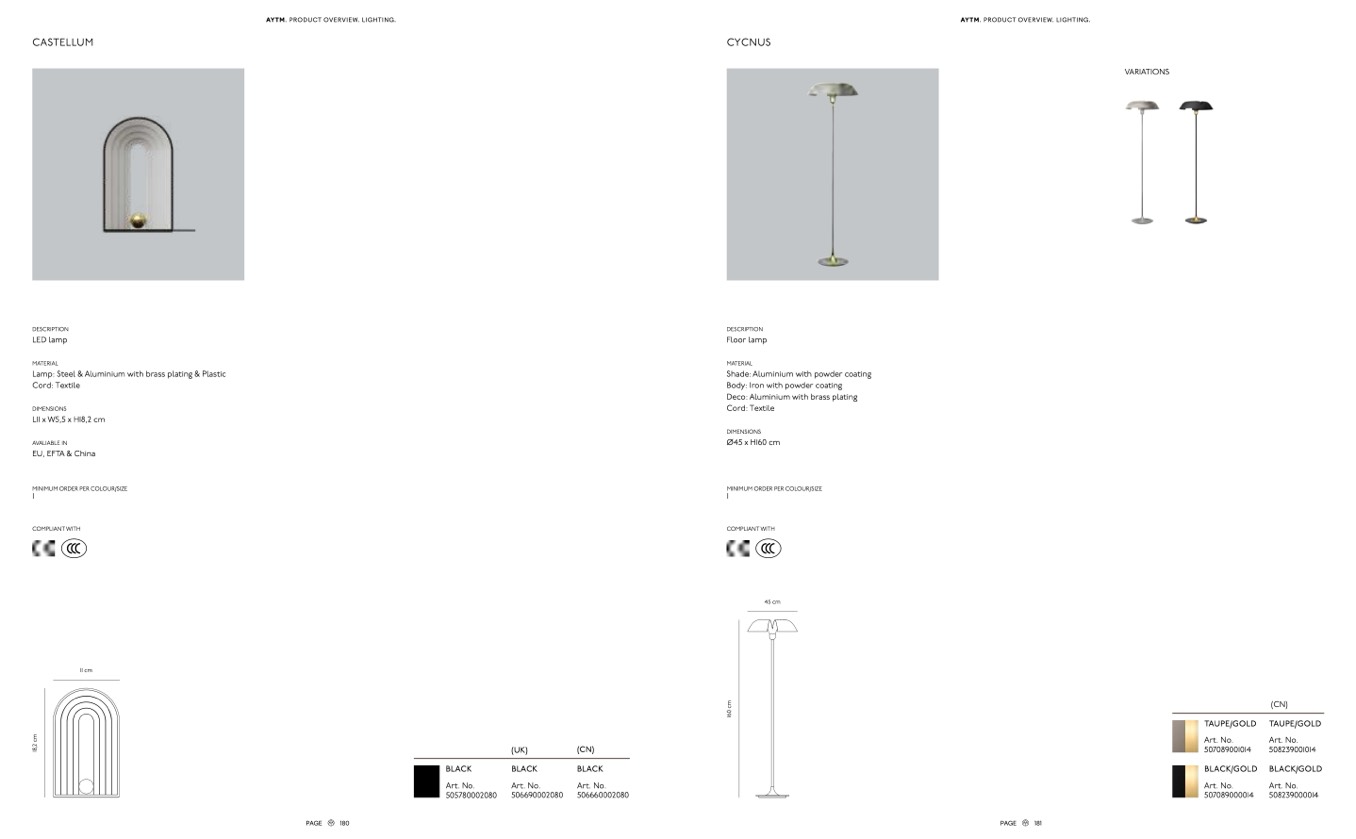 Lamp: Steel & Aluminium with brass plating & Plastic