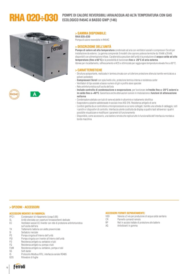 disponibili con alimentazione trifase. Caratteristica peculiare dell’unità è la produzione di acqua calda ad alta