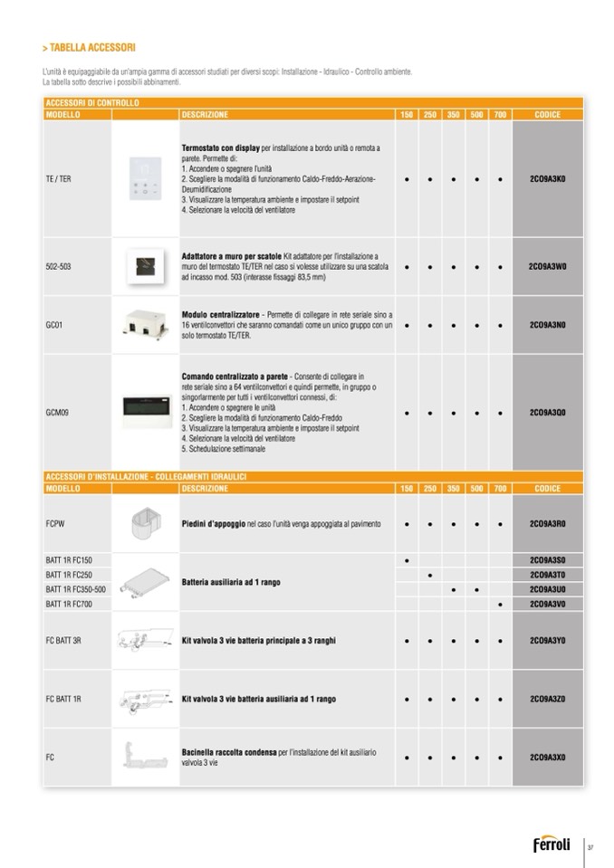 16 ventilconvettori che saranno comandati come un unico gruppo con un