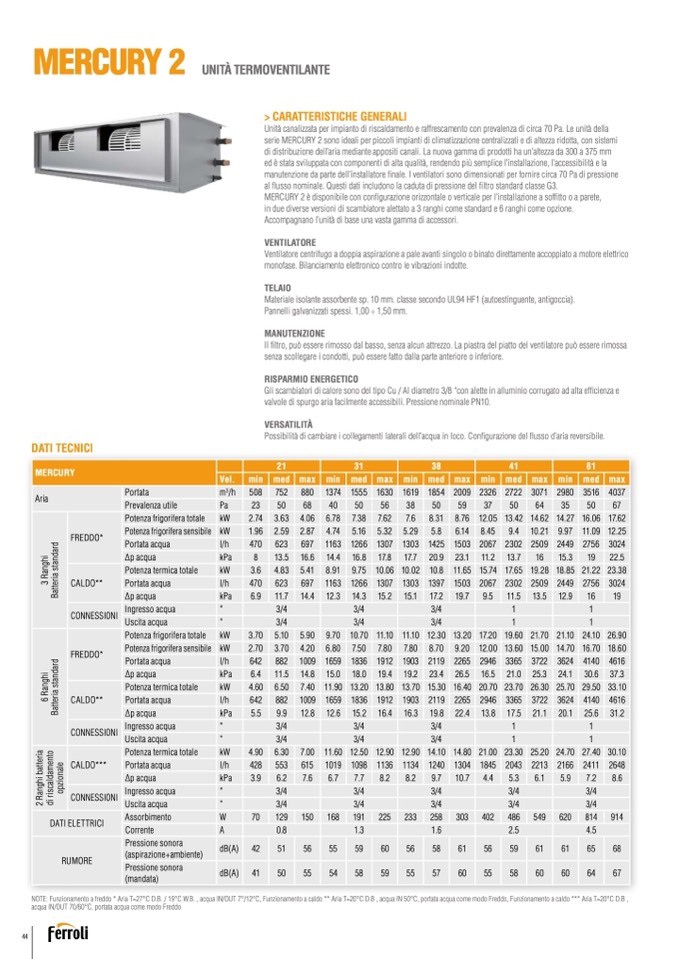 serie MERCURY 2 sono ideali per piccoli impianti di climatizzazione centralizzati e di altezza ridotta, con sistemi