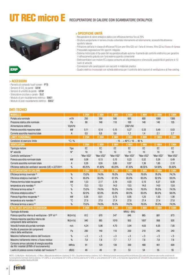 - Elettroventilatori con motore EC a basso consumo ad alta prestazione e silenziosità; possibilit