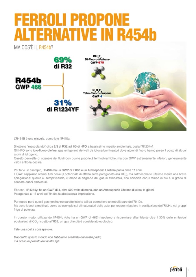 In questo modo, utilizzando l’R454b (che ha un GWP di 466) riusciamo a risparmiare all’ambiente oltre il 30% delle emissioni