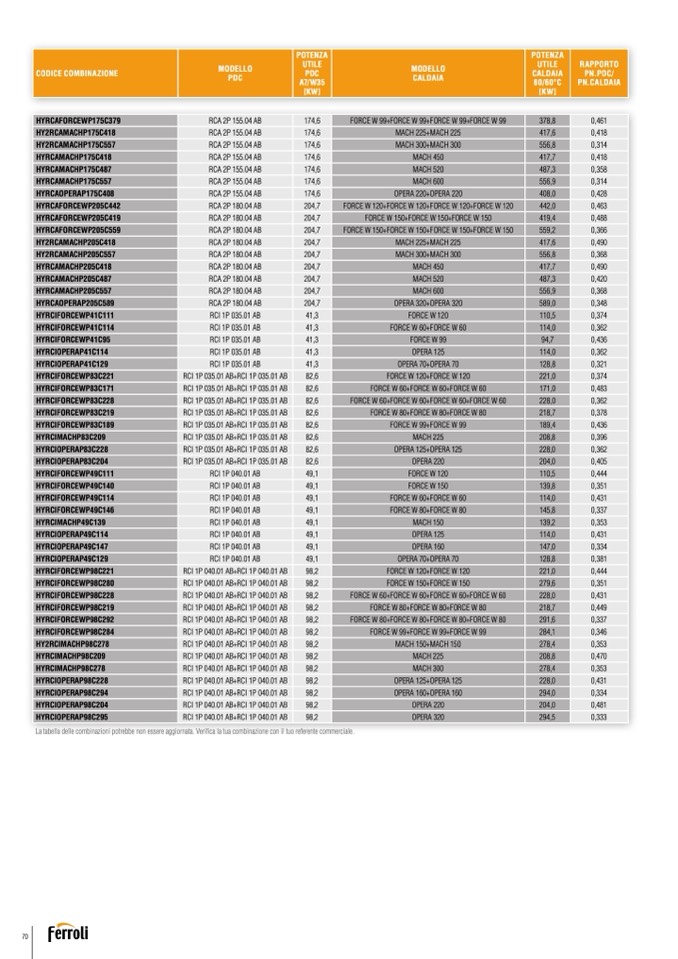 La tabella delle combinazioni potrebbe non essere aggiornata. Veri